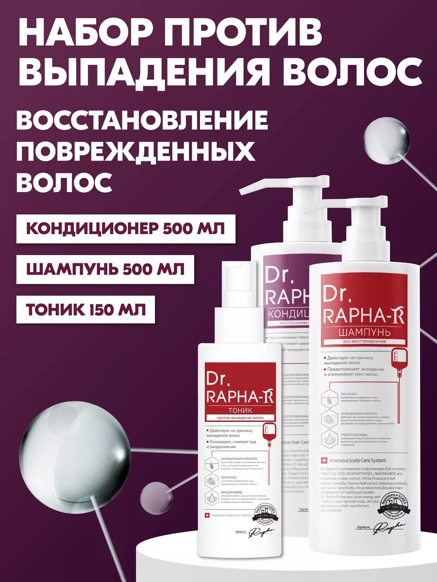 Dr. RAPHA-R Набор восстанавливающий шампунь, кондиционер и тоник, Корея