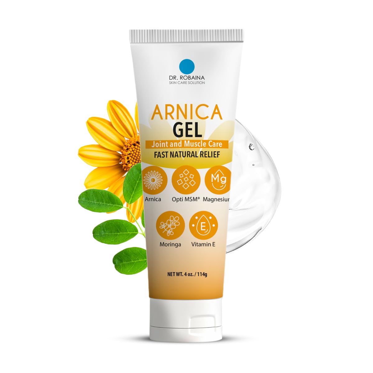 Dr. Robaina Arnica Gel 4 oz Concentrated Arnica montana with MSM Magnesium & Vitamin E | Unscented Cooling Gel for Thin Skin & Bruised Areas | Fast-Absorbing Non-Greasy | Made in USA 1 Unit