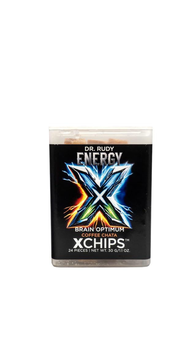 Dr. Rudy Energy XChips Coffee Chata Clean Energy & Focus Natural Caffeine + L-Theanine + B12 Birchwood Xylitol for Oral Health Fast-Dissolving Cubes - 2 Pack