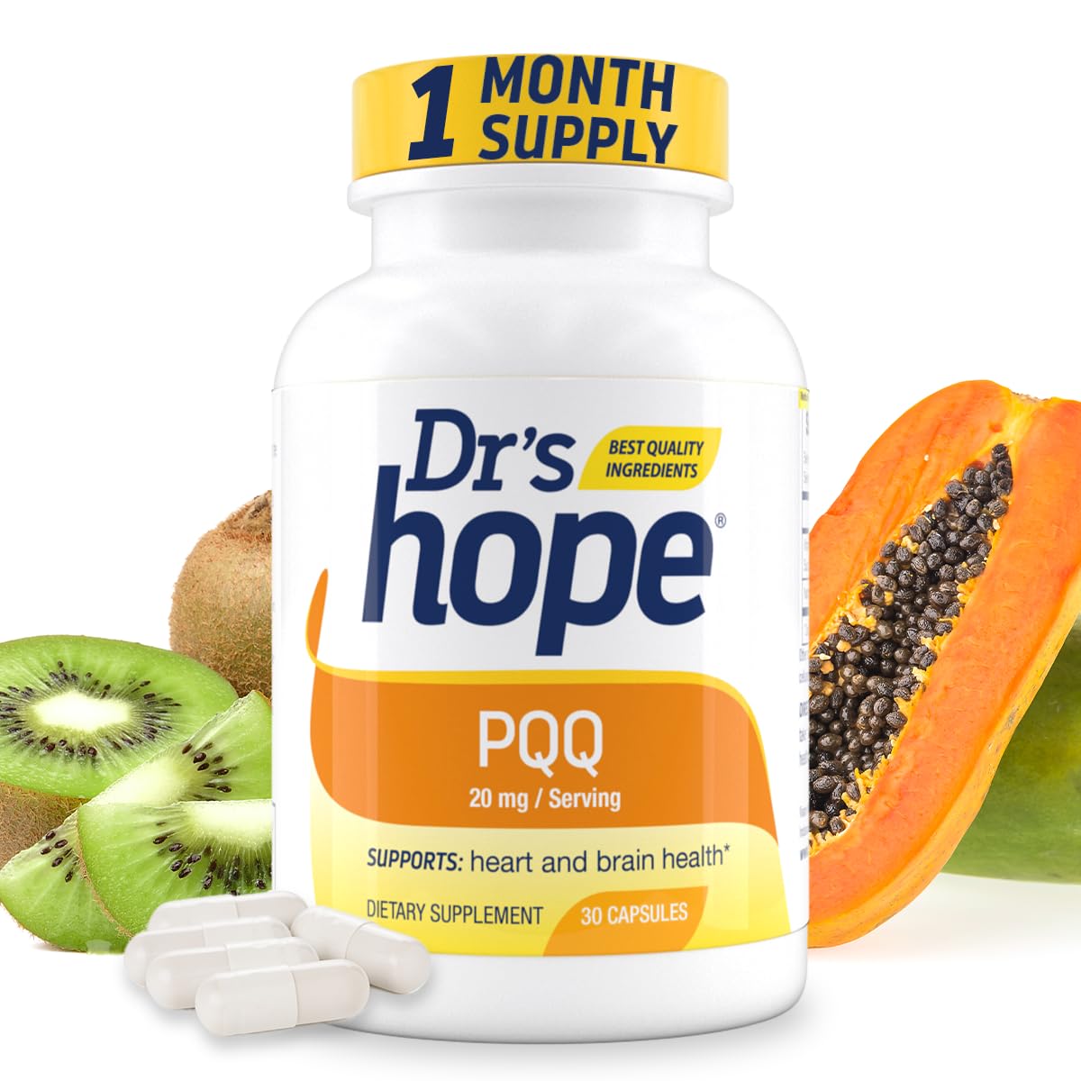 Dr's Hope Pyrroloquinoline Quinone Supplement 20 mg - Promotes Brain Heart & Mental Performance - For Muscle Function Energy Production & Longevity - Gluten Free - 30 Vegan Capsules - 1 Month Supply