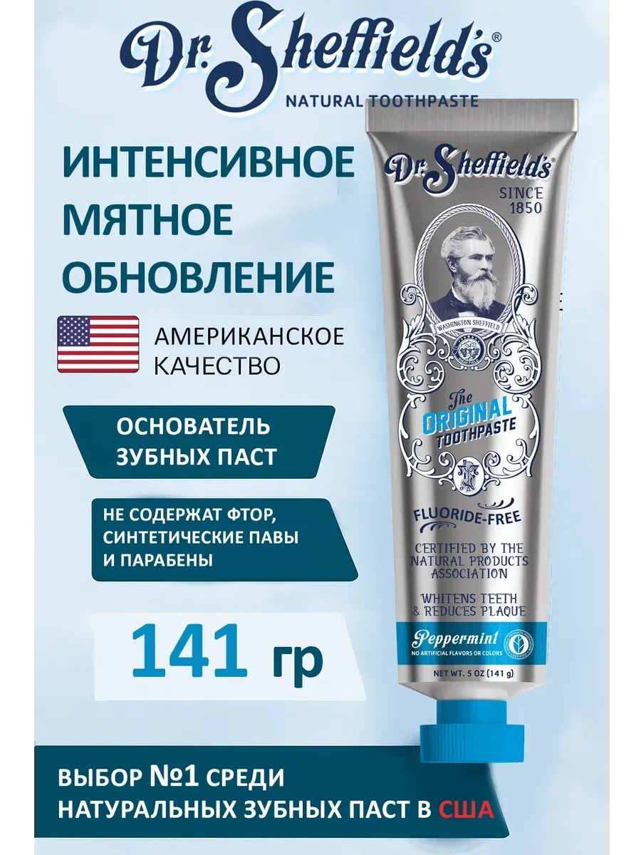 Dr. Sheffield’s Peppermint — натуральная мятная зубная паста премиум-класса, созданная по оригинальной рецептуре 1850 года. Это не просто средство гигиены — это результат более чем 170 лет научных разработок, инноваций и стремления к идеальной формуле без компромиссов. Паста сертифицирована Natural Products Association, не содержит фтора, SLS, парабенов и искусственных добавок. Это делает её не только безопасной для ежедневного использования всей семьёй, но и максимально эффективной для тех, кто заботится о здоровье ротовой полости и выборе экологически чистых продуктов.