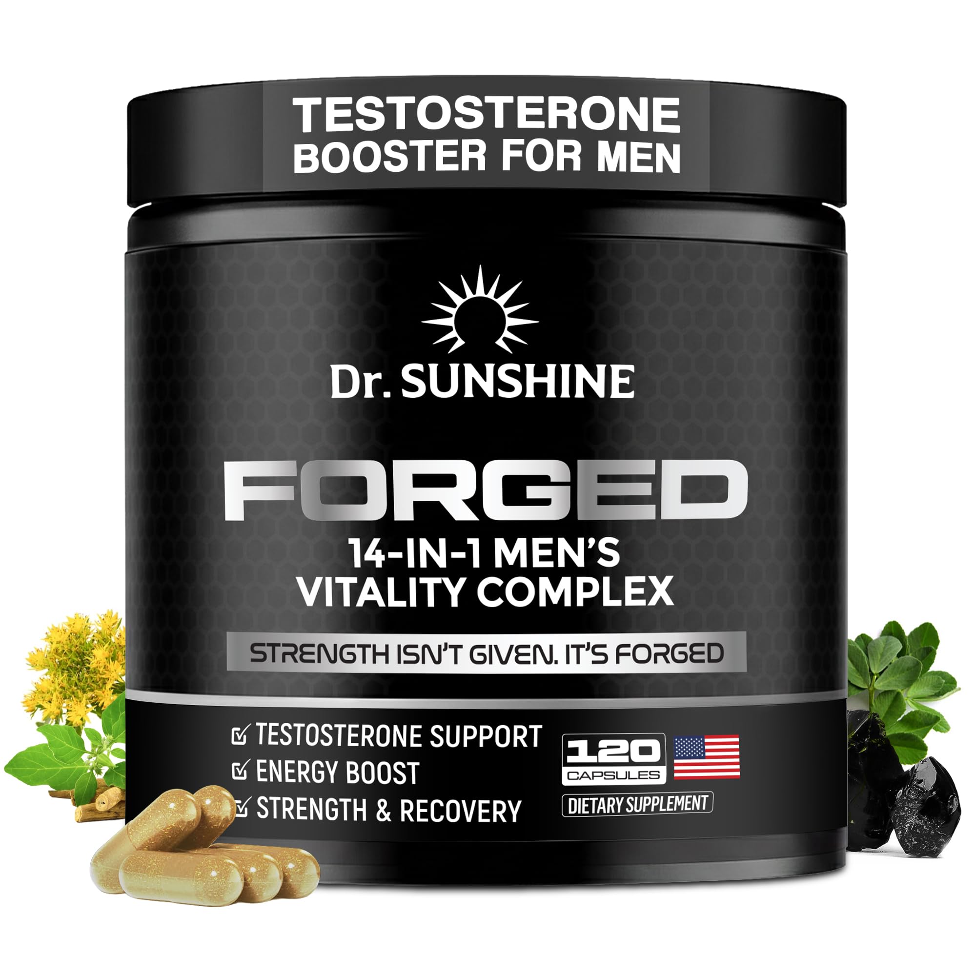DR. SUNSHINE Forged Testosterone Supplement for Men 14 in 1 Natural Male Strength with Shilajit, Ashwagandha,Tongkat Ali-Muscle Builder Testosterone Booster for Mens-2 Month (120 Capsules)