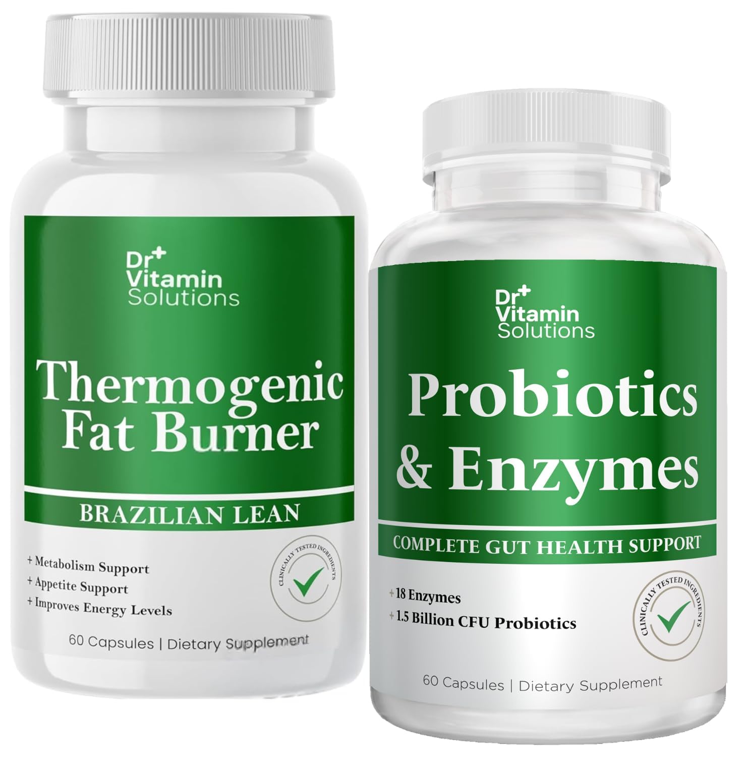 The Dr Vitamin Ultimate Gut Health Bundle includes our best selling Thermogenic Fat Burner (60 caps) combined with our innovative new Digestive Enzymes with Probiotics Prebiotics for MAX digestive health.