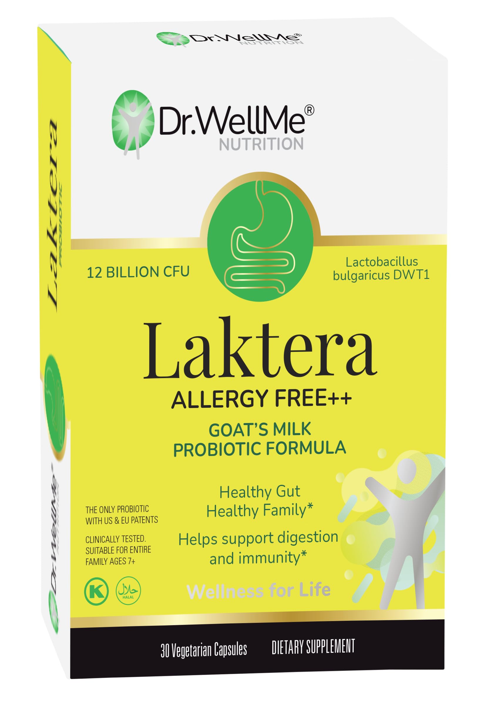 Dr. WellMe Laktera Allergy-Free Probiotics 30 Capsules 12B CFU Goat s Milk Probiotic Formula Immune & Gut Health Supplements Low Lactose Gluten-Free for Adults & 7+ Children
