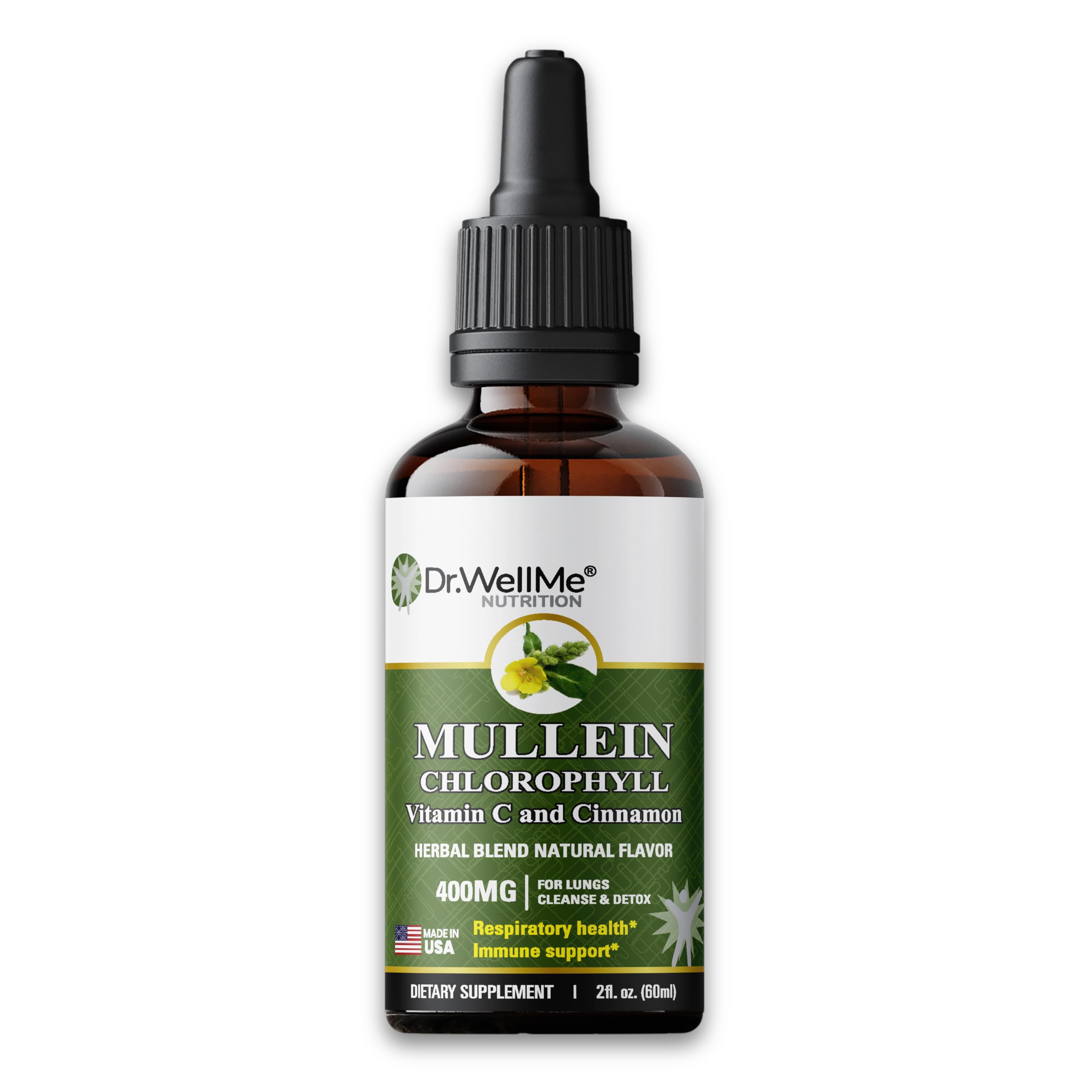 Dr.WellMe Mullein Chlorophyll 2 fl oz Liquid Drops Natural Detox & Promotes Health Gut Support High Absorption Packed with Minerals for Wellness