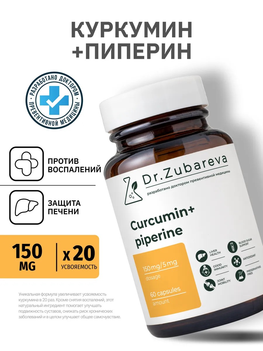 Dr. Zubareva Куркумин с пиперином в капсулах куркума