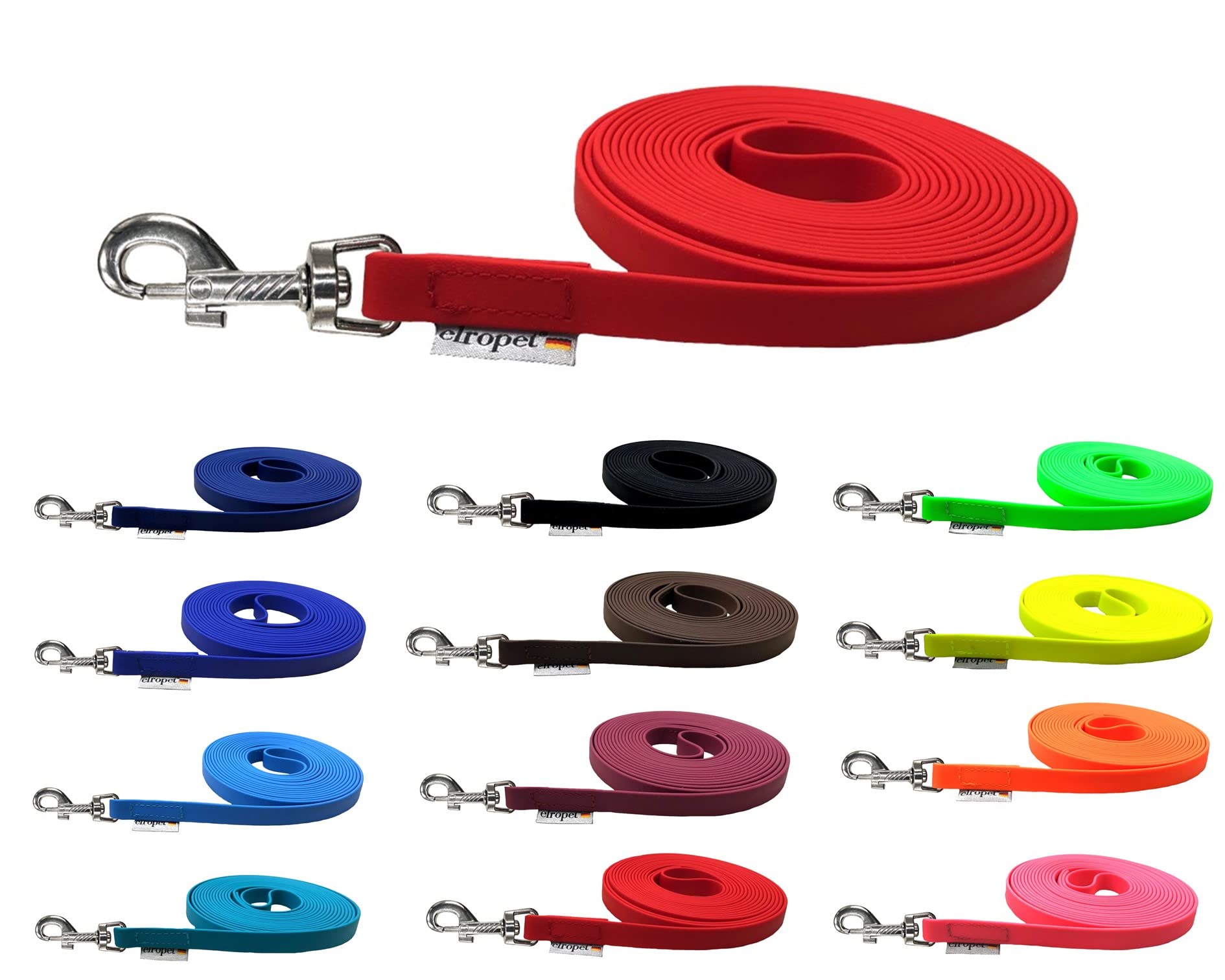 We also have other bothane linen in the program once 9mm for small dogs and 13mm.This leash is 16mm wide and therefore ideal for medium and large dogs.Important: We only use original biothane!This is particularly tear -resistant and UV constant, which means that the colors do not fade.In addition, this biothane leash can lie in water and dirt for days without the leash absorbing water.Another advantage is that the leash does not absorb any smells.This leash is really one of our most popular lines.A quality product of the Elropet brand.We process this high -quality material in our own production facility in Germany.In order to be able to offer you optimal tear resistance, we sew the biothane leash with a special seam seam.