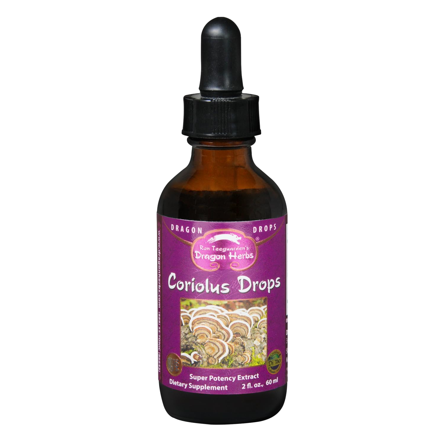 Dragon Herbs Turkey Tail Coriolus (Wild) Drops Mushroom Supplement Immunomodulator Support Microbiome Resilience Gut Liver Health Triple Extraction Fast Acting Super Potent 2 fl oz 60mL