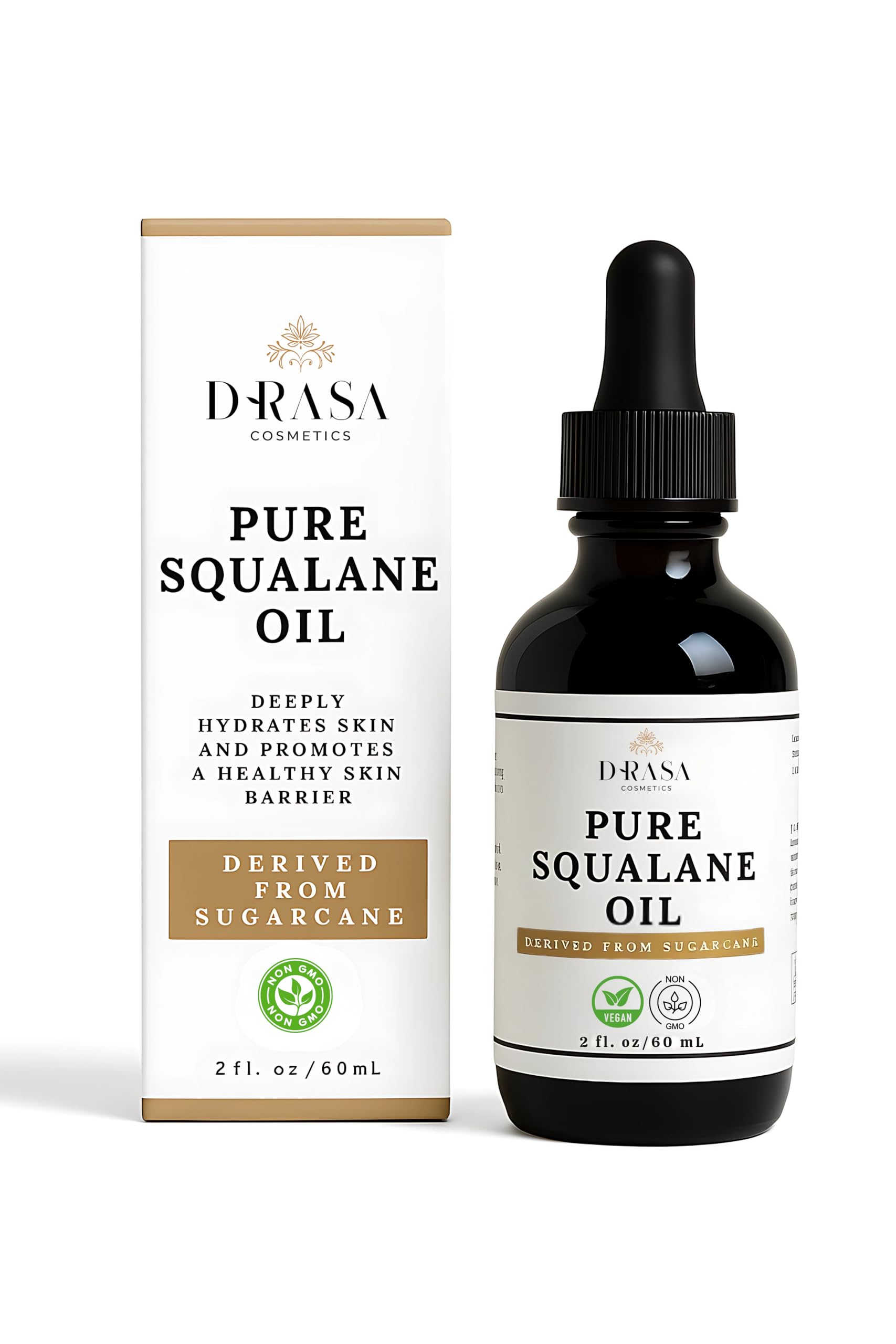 Experience the silky power of DRASA's 100 Pure Squalane Oil, derived from renewable sugarcane through a clean, eco-conscious process. This single-ingredient facial oil mimics your skin's natural sebum to deliver lightweight hydration without clogging pores. It absorbs instantly, leaving your skin soft, supple, and visibly smoother—never greasy. Perfect for all skin types—including sensitive and acne-prone—this plant-based emollient supports your skin barrier, improves elasticity, and locks in long-lasting moisture. Use it solo or layer it under makeup and treatments for a naturally radiant glow. Why You'll Love It: 100 Pure, Plant-Derived Squalane Sustainably sourced from sugarcane Non-greasy and fast-absorbing Hydrates, smooths, and softens skin Ideal for face, body, hair, and cuticles Safe for all skin types, including oily and sensitive Fragrance-free, non-comedogenic, and cruelty-free How to Use: Apply a few drops to clean skin as the final step in your skincare routine or mix into your moisturizer. Can also be used on dry hair ends, nails, or any area needing moisture. Ingredients: 100 Squalane (plant-derived from sugarcane)Ideal for All Skin Types: Balances oily skin, soothes dry skin, and calms redness or tightness without heaviness. Multi-Purpose Moisturizer: Safe and effective for face, body, hair, cuticles, and even beards—one simple ingredient, endless hydration benefits. Non-Comedogenic Fragrance-Free: Gentle enough for sensitive and acne-prone skin. Will not clog pores or cause irritation. Lightweight Fast Absorbing: Silky, non-greasy texture that absorbs quickly and leaves skin soft, smooth, and velvety to the touch. Skin-Identical Hydration: Mimics the skin's natural squalene for deep hydration that balances oil production and supports the moisture barrier. 100 Pure Plant-Based: Sustainably sourced from sugarcane through a bio-fermentation process—no additives, fillers, or animal by-products.