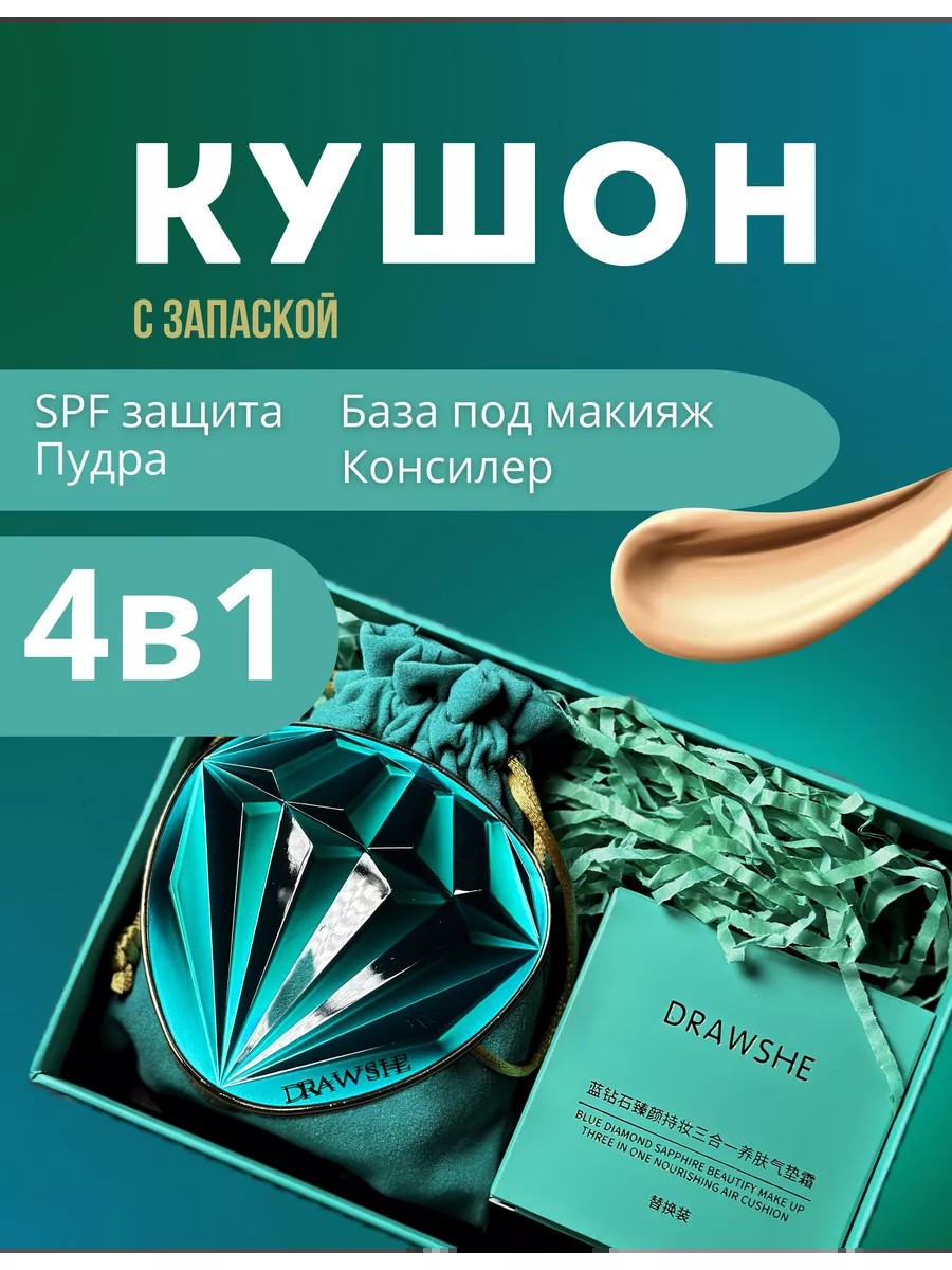 Drawshe Cushion: A Diamond Among Makeup Products Drawshe Cushion is more than just a foundation; it's a true diamond among makeup products, combining exquisite design, impeccable effectiveness, and impeccable quality. The cushion case is a gem in the world of cosmetics. At first glance, you realize this is more than just packaging. This case is a work of art, crafted with meticulous attention to detail. Its design is unique and elegant, perfectly complementing any style. The Drawshe case ensures safe storage of the cushion, protecting it from damage and maintaining its freshness throughout its shelf life. Inside is the finest velour fabric. When you open the Drawshe case, you enter the true world of Korean cosmetics. Inside, you discover not just a foundation, but a true masterpiece of beauty and innovation. A waterproof formula guarantees a flawless look all day long. Drawshe waterproof face cushion foundation will give your skin incredible durability and a healthy glow. It applies and blends easily, creating a flawless result that will last all day. Secrets of the Drawshe formula: The unique formula of Drawshe cushion is based on a technologically advanced complex of ingredients that make it so effective and unique: * Hyaluronic acid: provides deep hydration to the skin, leaving it velvety and radiant. * Green tea extract: has antioxidant properties, protecting the skin from the harmful effects of free radicals. * Chamomile extract: soothes and relieves inflammation, leaving the skin more sensitive and well-groomed. Simple and pleasant application process Drawshe cushion is equipped with a convenient sponge.