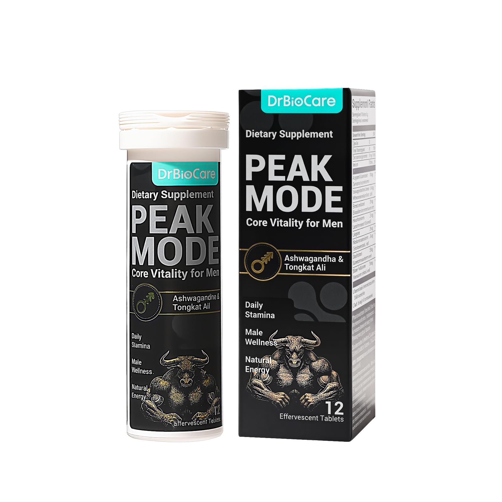 DrBioCare Peak Mode Core Vitality for Men 7-in-1 Effervescent Tablets | Tongkat Ali, Maca & L-Arginine,Ashwagandha, | Boost Stamina, Drive & Blood Flow for Good Performance | Berry Flavor 12 Tablets 12 Count (Pack of 1)