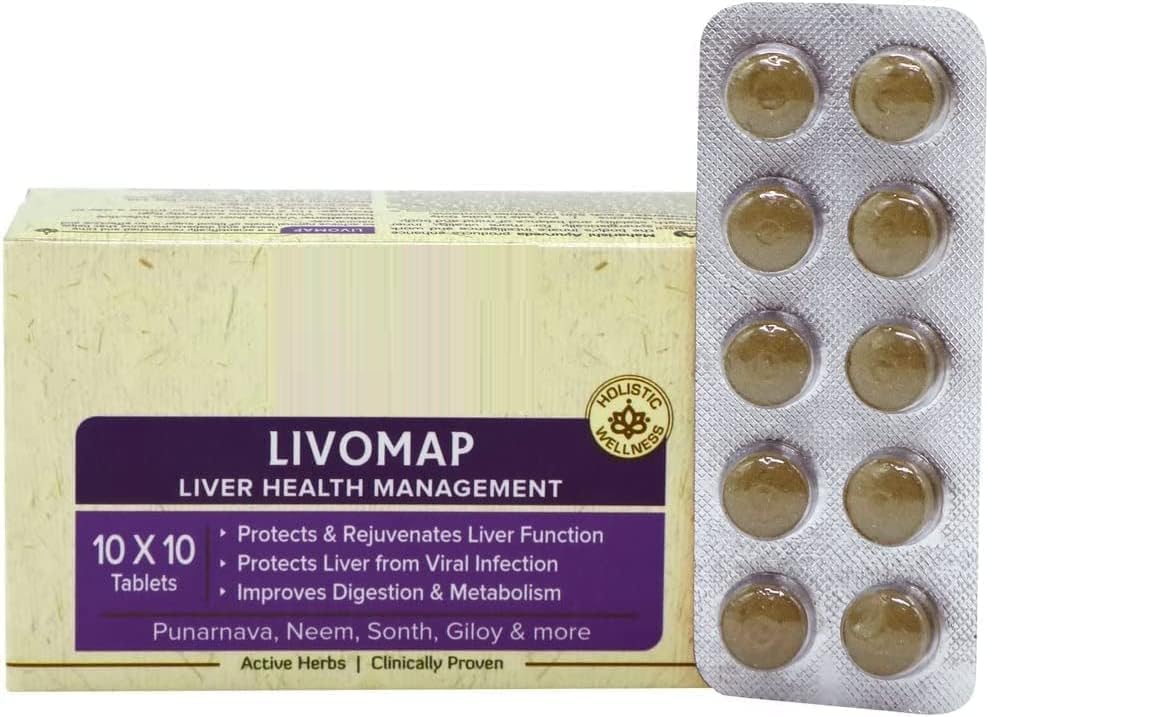 Livomap Tablets For Liver Health Management Rejuvenate Liver Function Improve Digestion And Metabolism - 100 Tablets Ayurvedic Remedy For Managing Liver Health: Livomap Is A 100 Ayurvedic Formulation Made With A Judicious Combination Of Highly Effective And Potent Natural Herbs That Protects The Liver And Energises The Liver. Protects The Liver: Livomap Is A Clinically Tested Natural Remedy That Can Be Consumed Regularly. The Herbs In The Syrup Protect The Liver From Seasonal Infections And Promote Overall Health. Improves Digestion And Metabolism: Livomap Is A Herbal Supplement That Improves Gut Health. It Helps In The Removal Of Toxins And Stimulates Appetite And Metabolism. Clinically Tested: Ayurveda Livomap Is Clinically Tested At Aiims In Rejuvenating Liver Health. No Side Effects: Ayurveda Livomap Is A Natural Formula Made From Time-tested Herbs And Ingredients That Has No Side Effects And Is Safe For All. How To Consume: Take 2 Tablets Twice A Day Before Meals Or As Advised By The Physician.