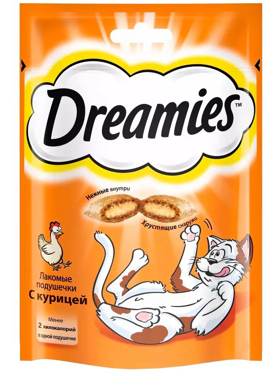DREAMIES Лакомые подушечки для кошек, с курицей, 60 г