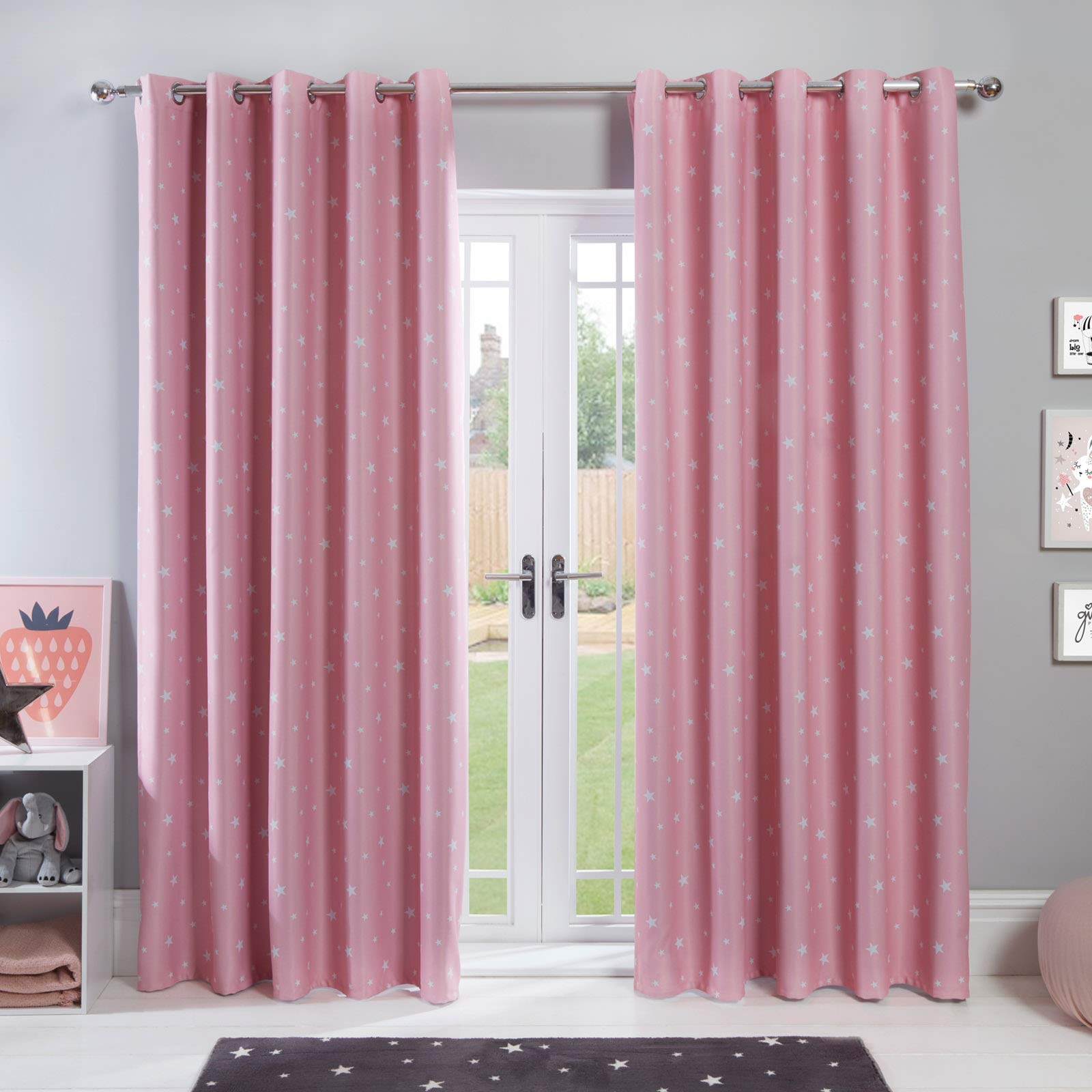 Dreamscene Star Blackout Curtains for Kids Bedroom Pair of Eyelet Thermal Panels - Blush Pink - 46" x 72" Blush Pink 46" wide x 72" drop