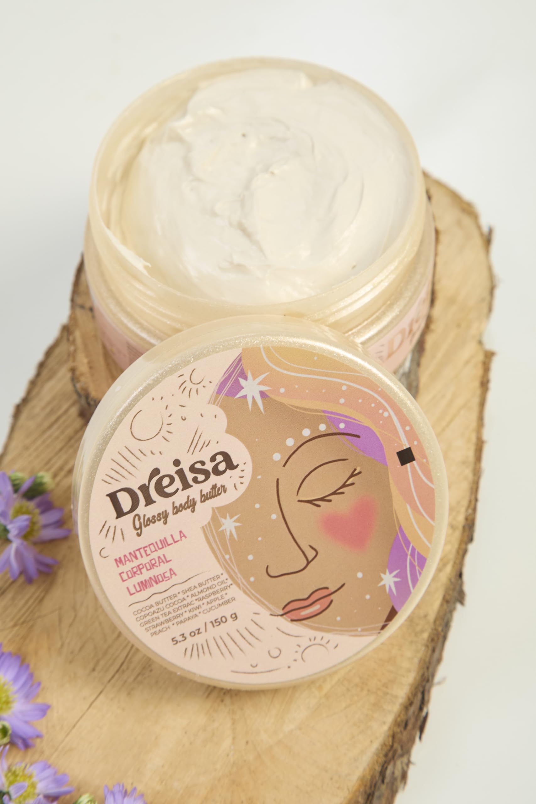 Dreisa Glossy Body Butter Luminous Moisturizing Cream with Cocoa Butter Almond Oil Fruit Essences 5.3 oz/150g