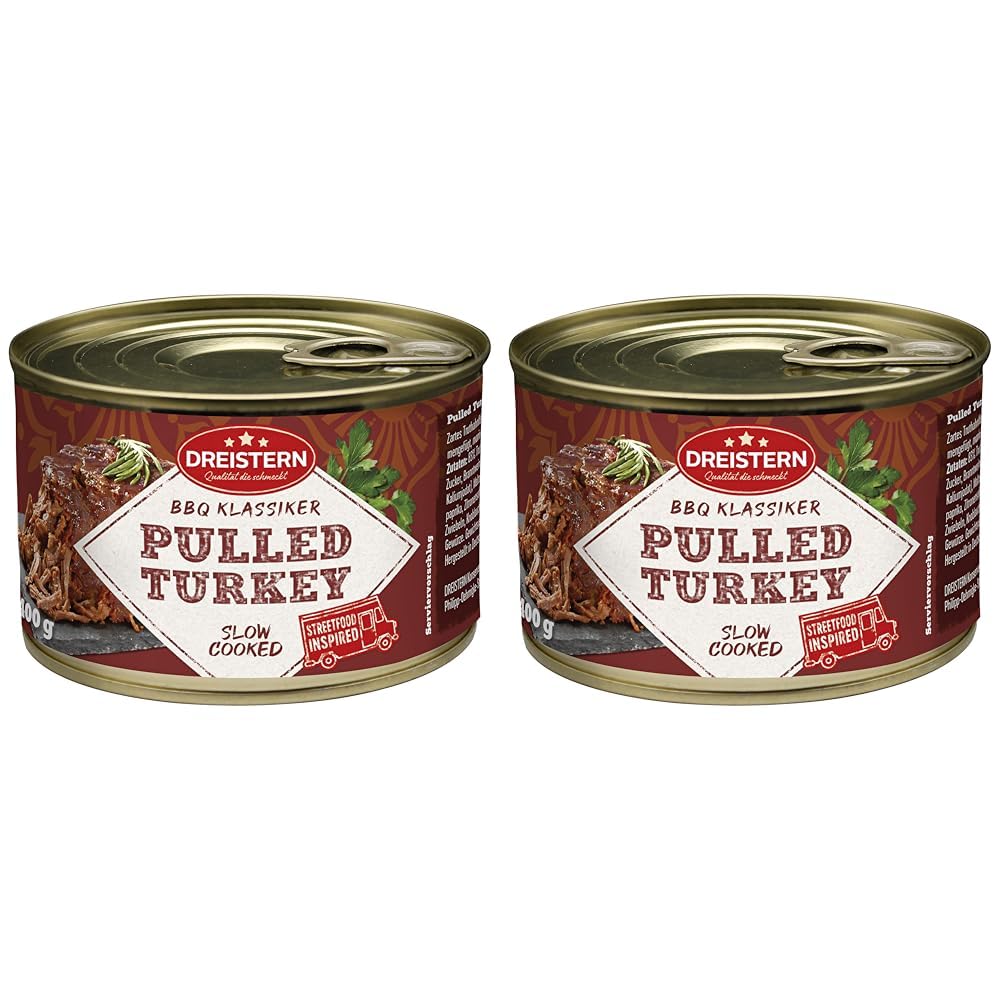 Ingredients ingredients Ingredients: 83 turkey, drinking water, glucose syrup, tomato paste, sugar, brandy vinegar, potato starch, iodized dining salt (dining salt, potassium iodate), maltodextrine, caramel sugar syrup, tapioca strength, vegetable pepper powder ), Tomatoes, onions, garlic, stabilizer: E450, Smoke salt (dining salt, smoke), spices. Instructions at 180 C approx. 25 minutes Warnings Weight loss by heating during production.Made in Germany with meat and vegetables from EU and non-EU countries. Moremade in Germany.Recyclable packaging.Quick and easy preparation.Popular classics with traditional recipes.The following information applies to each unit per pack.INHALTSSTOFFE ZUTATEN Zutaten: 83 Truthahnfleisch, Trinkwasser, Glukosesirup, Tomatenmark, Zucker, Branntweinessig, Kartoffelstärke, jodiertes Speisesalz (Speisesalz, Kaliumjodat), Maltodextrine, Karamellzuckersirup, Tapiokastärke, Gemüsepaprika, Zitronensaftpulver (Glukosesirup, Zitronensaftkonzentrat), Tomaten, Zwiebeln, Knoblauch, Stabilisator: E450, Rauchsalz (Speisesalz, Rauch), Gewürze. GEBRAUCHSANWEISUNG bei 180 C ca. 25 Minuten WARNHINWEISE Gewichtsverlust durch Erhitzen während der Herstellung. Hergestellt in Deutschland mit Fleisch und Gemüse aus EU- und Nicht-EU-Ländern. MehrHergestellt in Deutschland. Recycelbare Verpackung. Schnelle und einfache Zubereitung. Beliebte Klassiker mit traditionellen Rezepturen. Die folgenden Informationen gelten für jede Einheit pro Packung.Dreistern Pulled Turkey, 400 g (Packung mit 2) 400 g (2er Pack)
