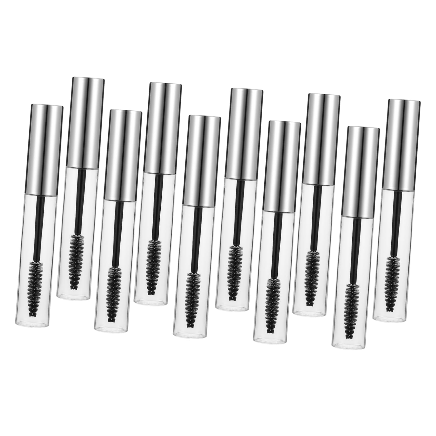 DRESSOOS 10pcs Mascara Empty Tube Refillable Cosmetic Containers Lip Glazes Tube Creme Makeup Silver Plastic