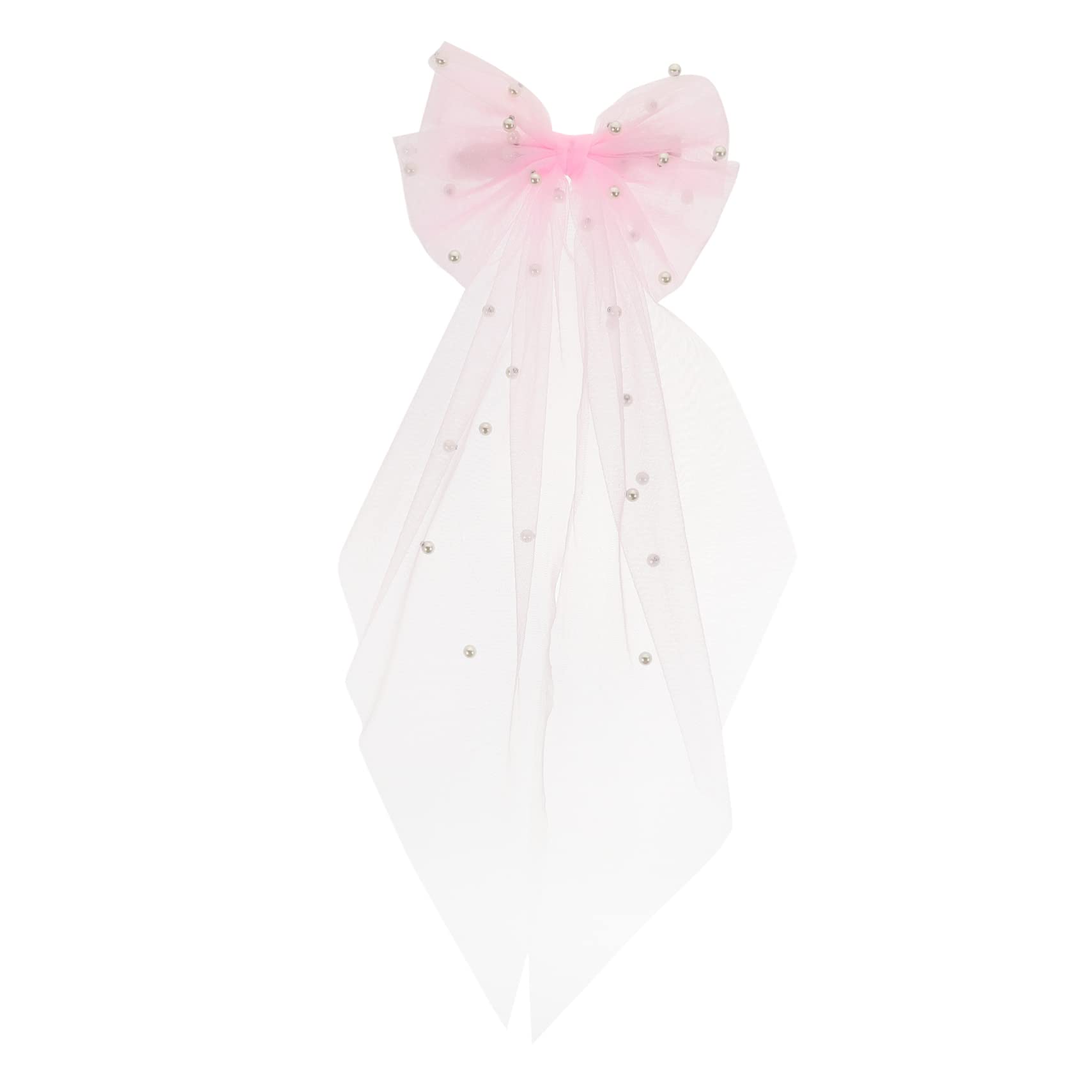 DRESSOOS Mesh Ribbon Hairpin Bow for Girls Pearl Decor Bows for Bridal Hair Accessories Bridal Veils for Wedding Hair Deyer Lace Veil Wedding Veils Pink Bride Pearl Temperament Top Clip