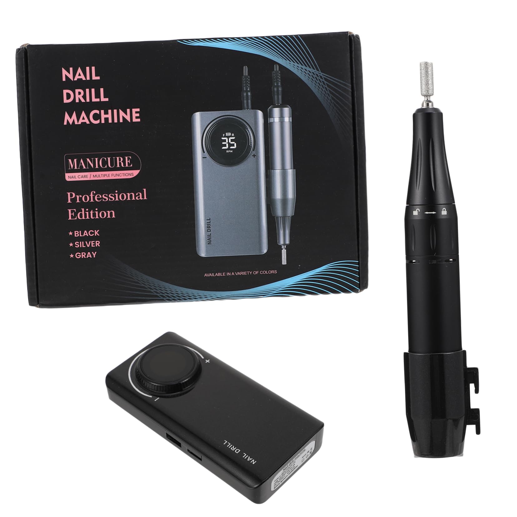 DRESSOOS Portable Nail Drill Nail Polisher Aluminum Alloy Miss Clothing Set Mini Sanding Tool 14X7X2.5CM Black