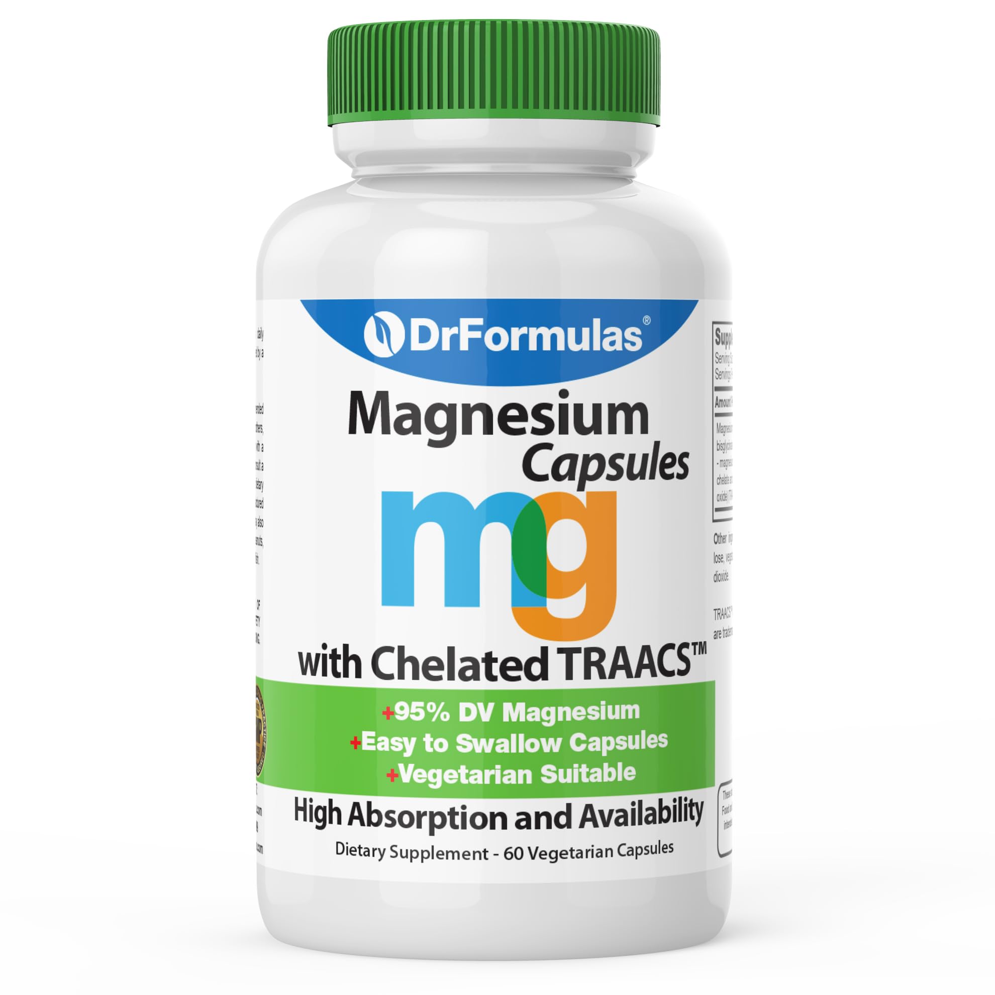 DrFormulas Magnesium Glycinate 400 mg Supplement for Women Men Kids Supplement with Chelated TRAACS Magnesium Bisglycinate 100% Chelated Capsules for Max Absorption 60 Capsules