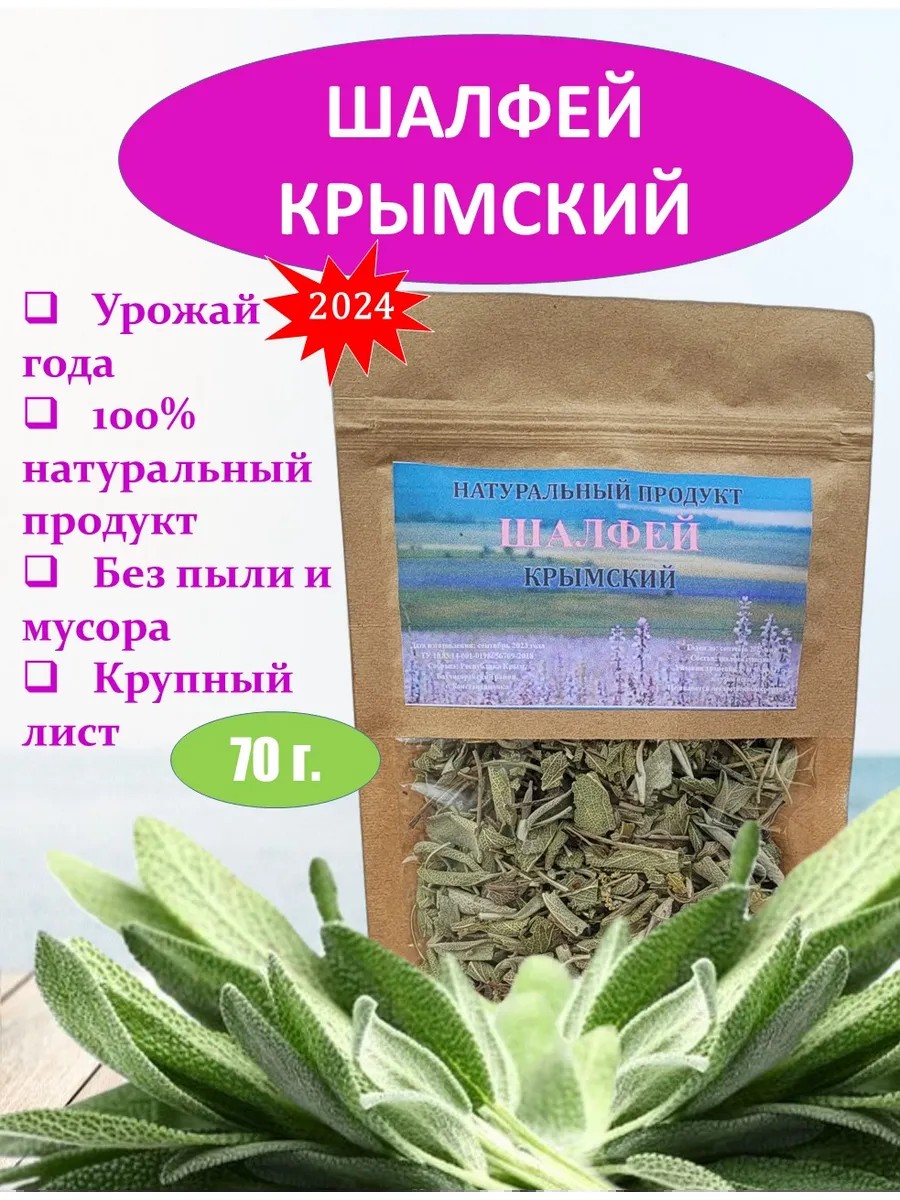 Dried sage, specifically its leaves, collected in the Crimean fields, is hermetically sealed in a ziplock bag to preserve its aroma and beneficial properties. In our products, we use only dried sage leaves, free of sticks, dust, and other impurities. Dried sage pairs beautifully with rosemary and garlic. Chefs and cooks use dried sage to add a piquant flavor to meat, poultry, and vegetable dishes. Dried sage also proves effective in pies and sauces. Simultaneously sweet, slightly bitter, and slightly sour, somewhat similar to rosemary, dried sage is always added at the end of the cooking process and is rarely used raw. With a slightly minty and nutmeg flavor, dried sage is also added to flavor sausages and stuffings for fatty meats (pork and goose). Dried sage is delicious in bean soups, stews, dumplings, and pasta dishes, especially as a ravioli filling. Try seasoning dishes with green peas, potatoes, tomatoes, and eggplant with sage. Combined with butter, dried sage transforms a simple sauce into something truly special, perfect for serving with ravioli and even pierogies, chicken, and vegetables. A pinch of dried sage added to vegetable oil adds a new flavor to fried fish. Add dried sage to a lemon marinade for chicken or to the butter for steak. Dried sage adds a light and memorable flavor to game and poultry dishes, especially offal. Sage adds a piquant flavor to grated cheeses and vegetable pie fillings. Grinding dried sage releases the herb's essential oils, transforming it into a much more aromatic ingredient. To make dried sage tea: pour about 200 milliliters of boiling water over about 1 tablespoon of crushed sage leaves and let steep to your desired strength before straining. For a delicate tea flavor, add lemon (juice and zest) and a little sugar. Mint will enhance the sage's refreshing properties, while rosemary will bring out its earthy, piney undertones. You can adjust the strength of the herbal flavor by increasing the amount of dried sage while maintaining the same volume of water. Dried sage tea can be enjoyed hot or with ice at any time of day or night. It won't interfere with sleep like caffeinated drinks. Try it and you'll love it.
