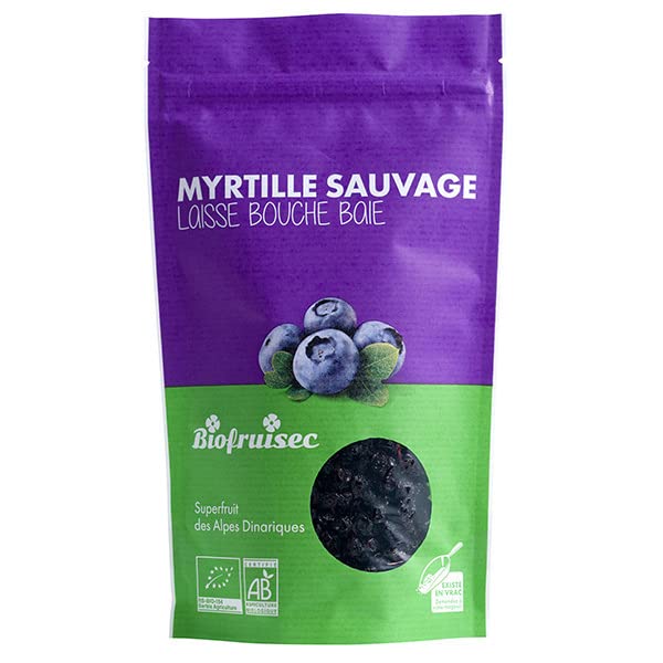 Biofruisec. Dried wild European blueberries 100g. Organic dried red fruits. Organic dried fruits. Dried fruits.Biofruisec. Myrtilles sauvages d'Europe séchées 100g. Fruits rouge séchés bio. Fruits séchés bio. Fruits secs.