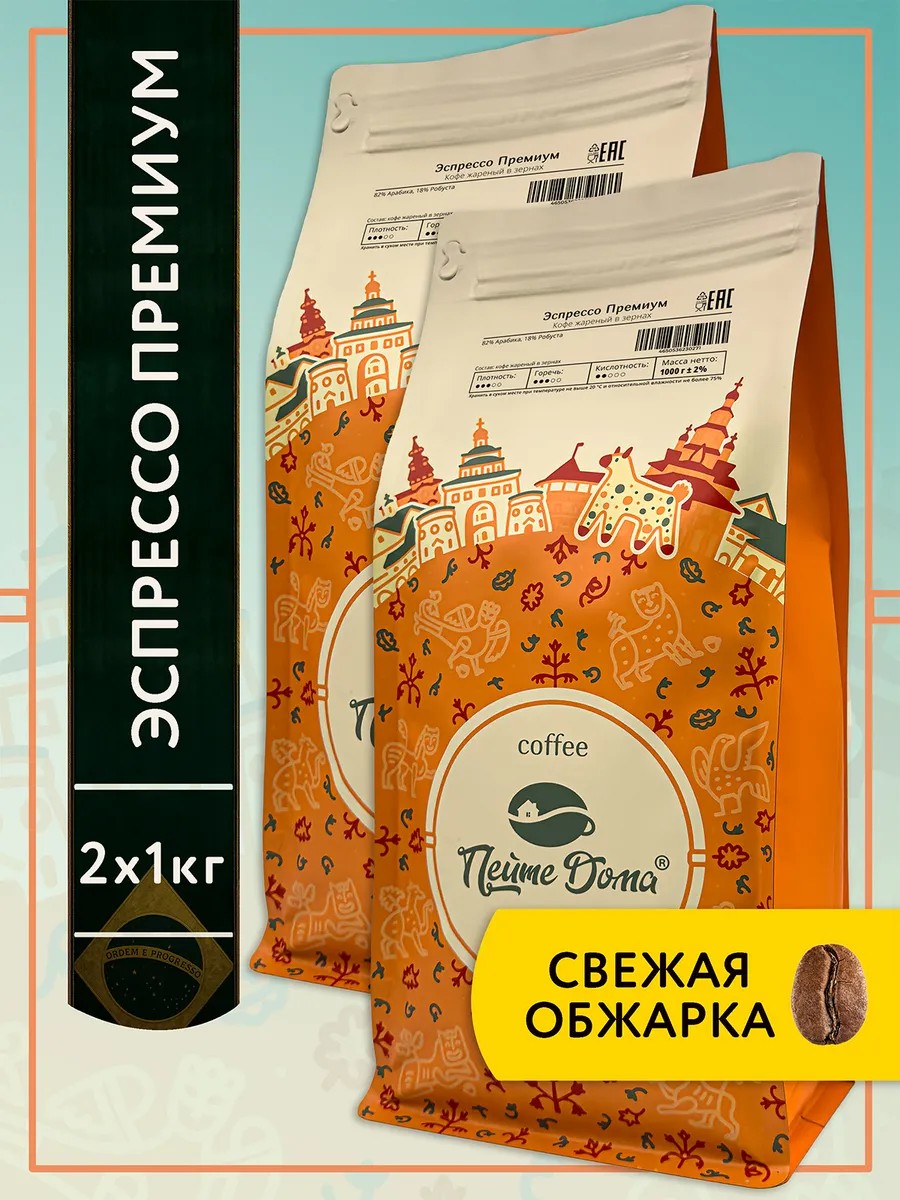 Пейте Дома Кофе в зернах 1 кг 2 шт Эспрессо Премиум арабика робуста