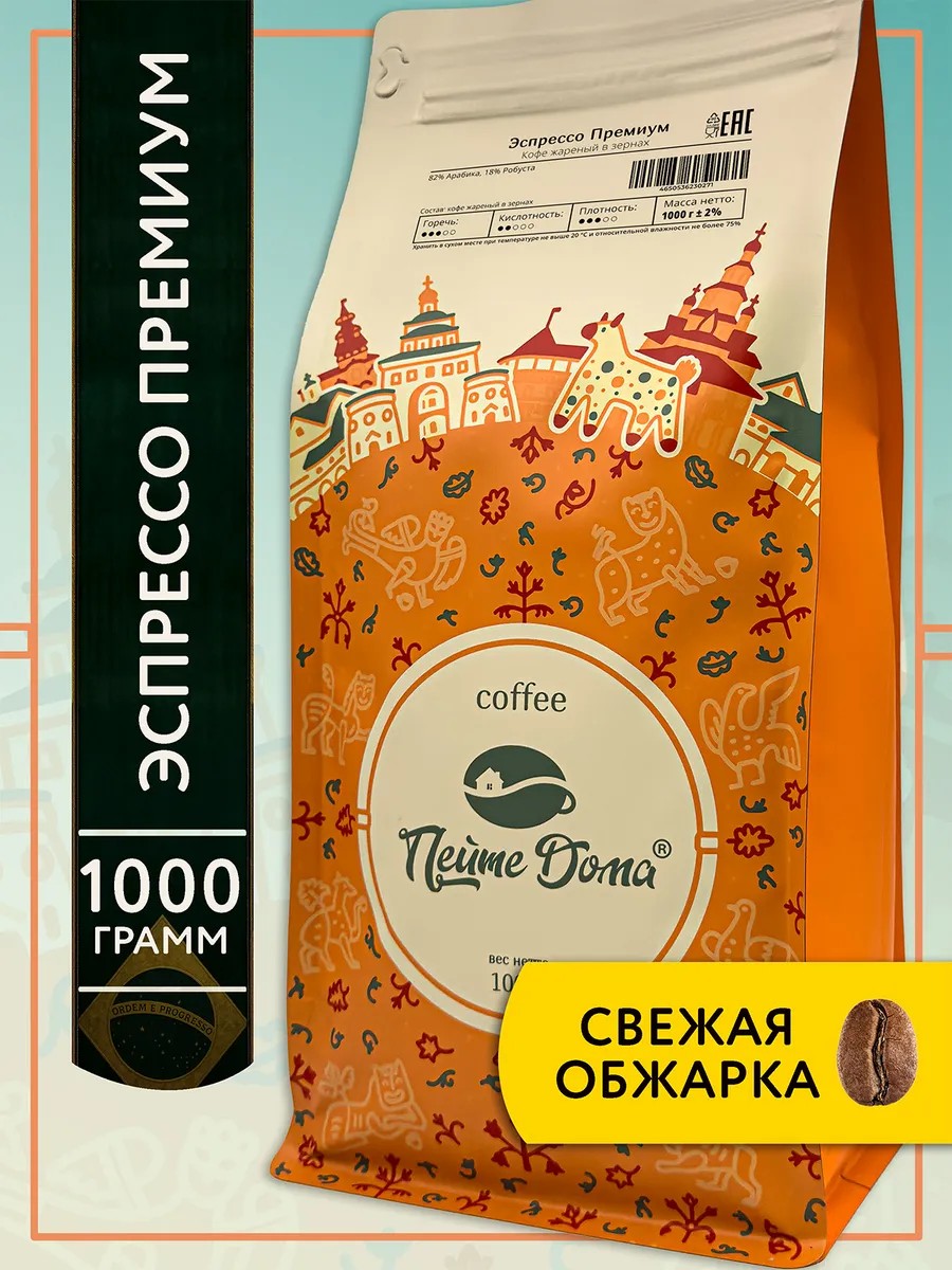 Пейте Дома Кофе в зернах 1 кг Эспрессо Премиум арабика робуста