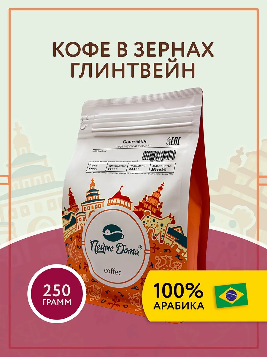 Представьте, как чудесный аромат Глинтвейна наполняет вашу кухню, создавая уютную атмосферу. Кофе в зернах "Глинтвейн" "Пейте Дома" - это настоящий праздник вкуса! Ароматные зерна арабики средней обжарки подарят вам бодрящий напиток с насыщенным вкусом и приятным ароматом специй. Этот кофе станет отличным выбором для приготовления американо, капучино или латте, а его оригинальный вкус порадует вас в любое время дня.