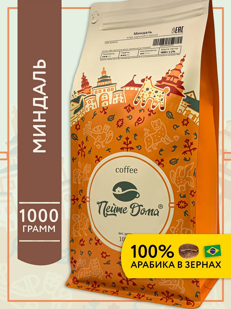 Пейте Дома Кофе в зернах ароматизированный Миндаль 1кг
