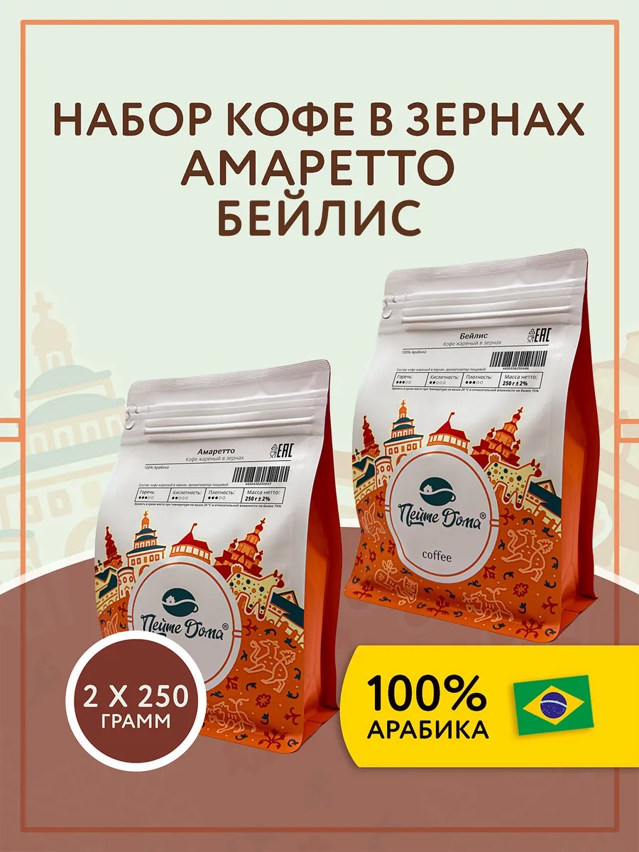 Пейте Дома Набор кофе в зернах 500 г Aмаретто, Бейлис