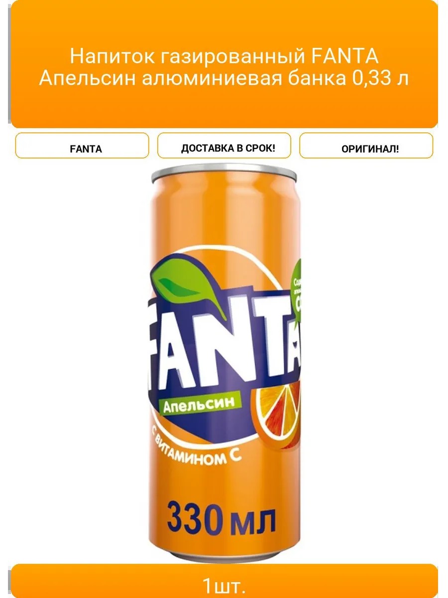КомплектацияНапиток газированный FANTA Апельсин алюминиевая банка 0,33 л