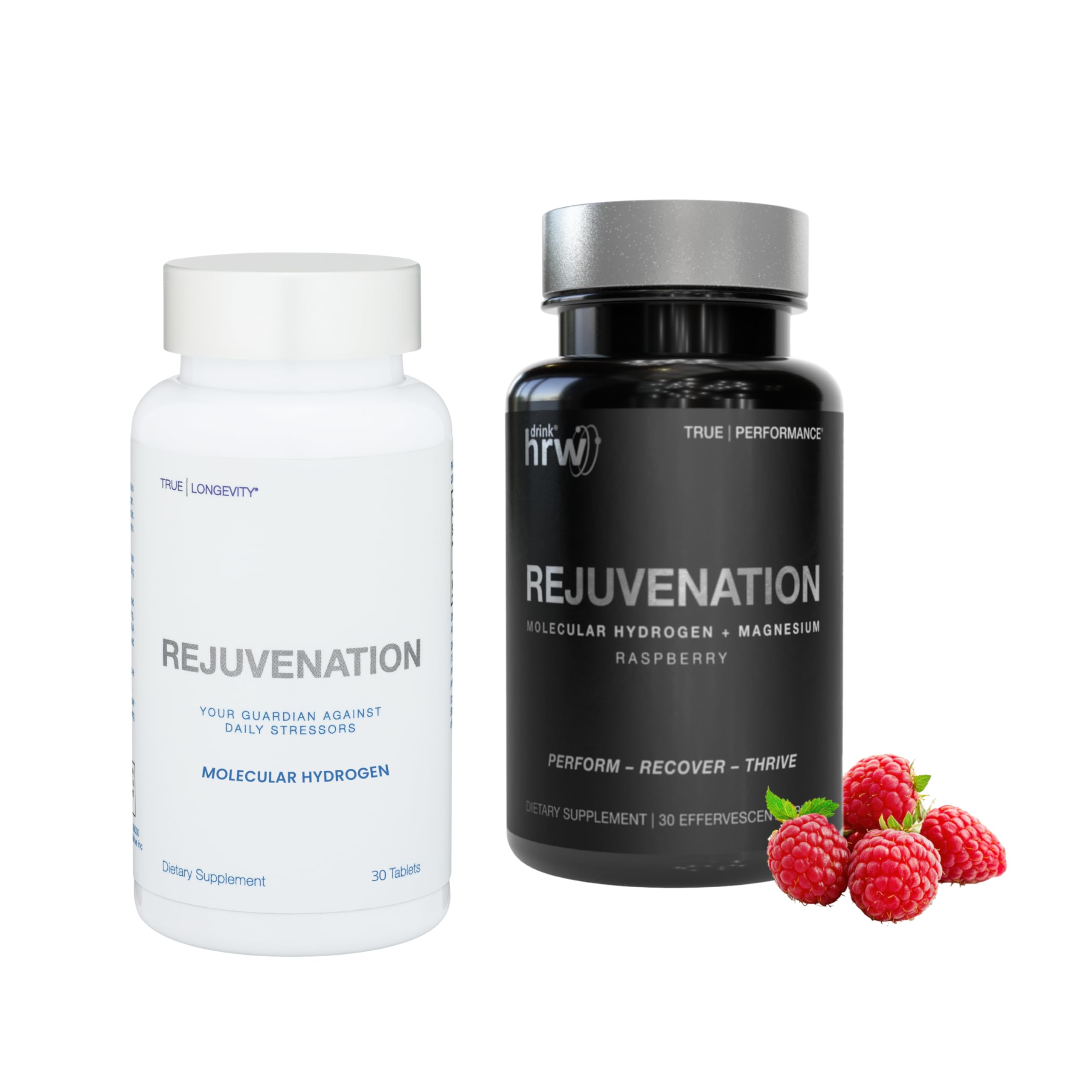 DRINK HRW Rejuvenation Unflavored Molecular Hydrogen Water Tablets (30ct) + Rejuvenation Raspberry Molecular Hydrogen Water Tablets (30ct)