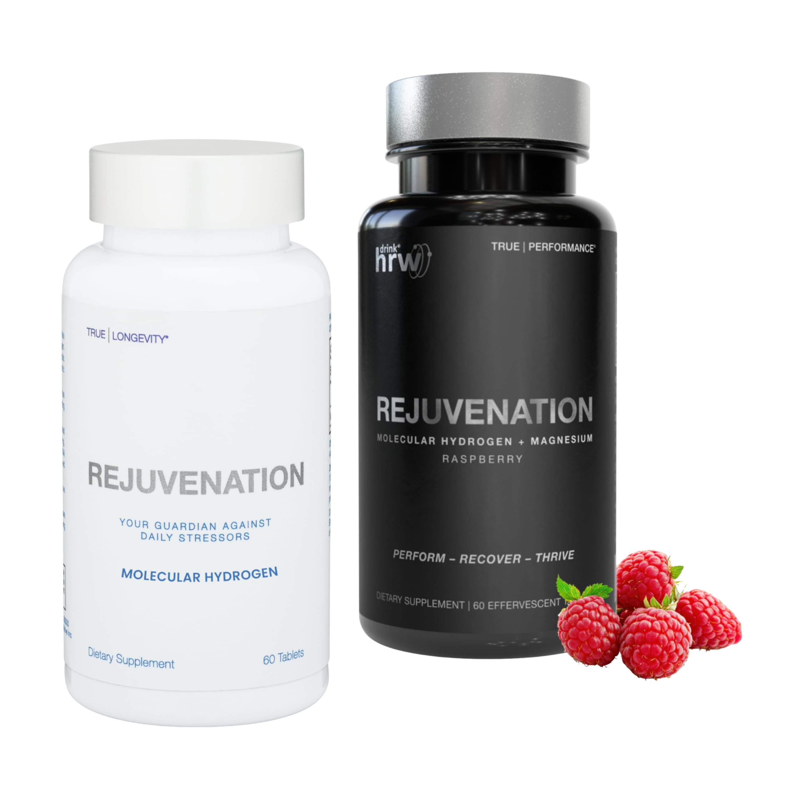 DRINK HRW Rejuvenation Unflavored Molecular Hydrogen Water Tablets (60ct) + Rejuvenation Raspberry Molecular Hydrogen Water Tablets (60ct)