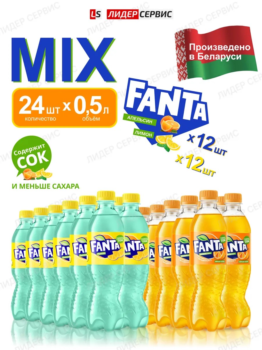 | Комплектация | Фанта Лимон 12 бутылок по 0,5; Фанта Апельсин 12 бутылок по 0,5 |