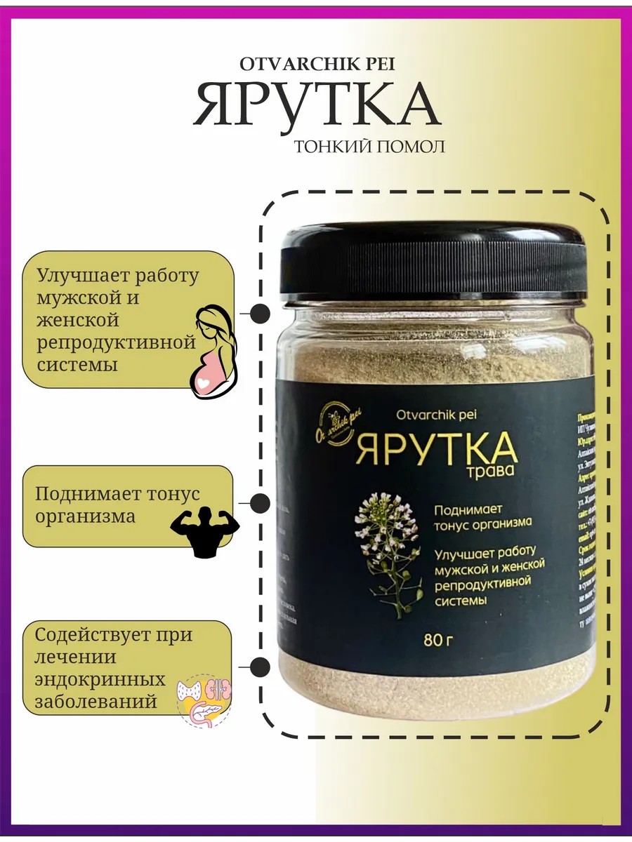 | Комплектация | Ярутка полевая трава порошок 80 грамм - 1 шт |