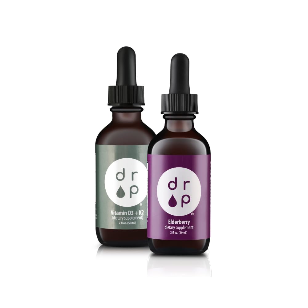 Drop Supplements Liquid Elderberry Drops and Vitamin D3+K2 Drops Bundle