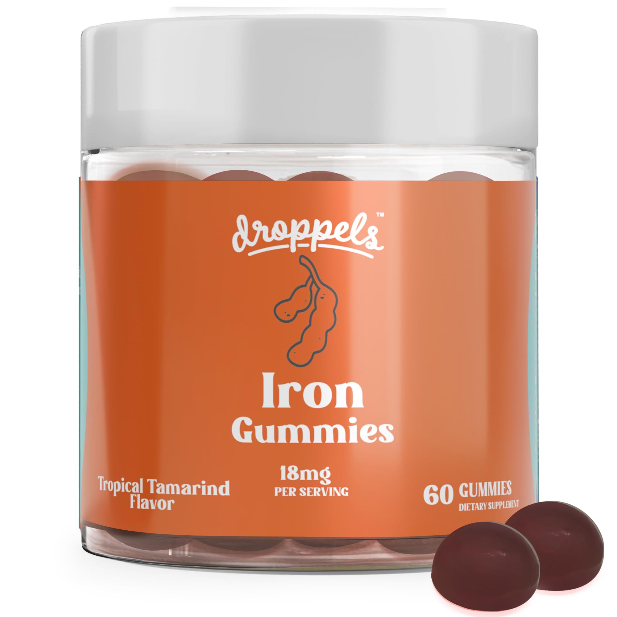 Droppels Iron Gummies 18mg for Women and Men Vegan Plant-Based Iron Supplement | Supports Energy & Blood Health | Pectin-Based Non-GMO Gluten & Gelatin Free | Tamarind Flavor 60 Count