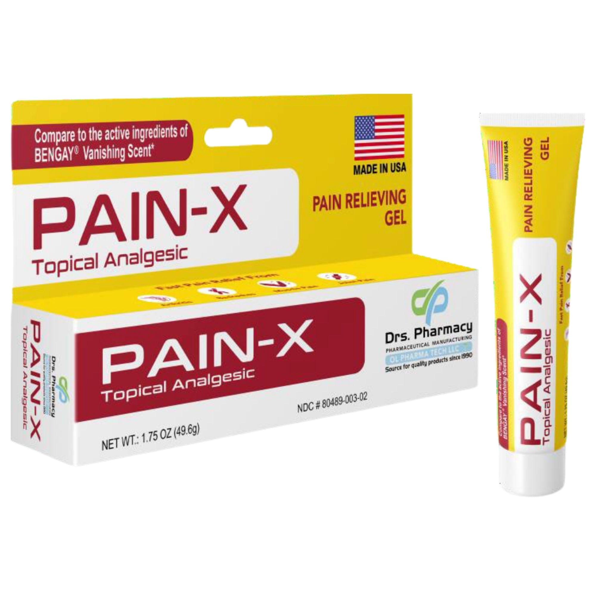 Drs. Pharmacy Pain-X Cream offers fast-acting menthol support to soothe overworked muscles and joints. The non-greasy formula dries quickly and features a vanishing scent, making it ideal for athletes, active lifestyles, or anyone looking for targeted relief. Proudly made in the USA.