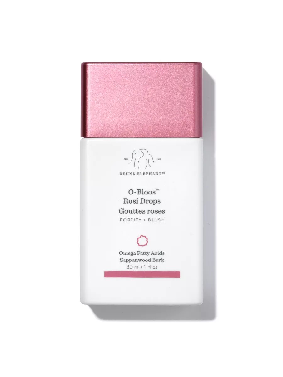 Drunk Elephant O-Bloos Rosi Drops liquid blush in a golden-peachy-pink shade will brighten your complexion, while a nourishing blend of barrier-restoring omega oils and essential fatty acids will leave skin feeling soft and soothed.