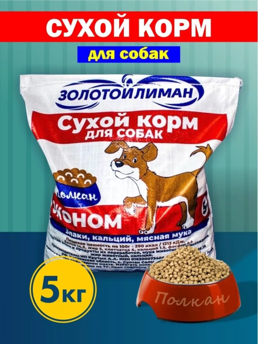 Polkan complete dry dog ​​food. The kibble is ideal for porridge and will delight your pet. Add some broth and the porridge is ready. This dry dog ​​food is made from natural ingredients that are common in the human diet, making it nutritious and completely safe. It contains the necessary vitamins and minerals for complete nutrition and health. The nutritional value (protein) is 14.5%. Our in-house laboratory and specialists ensure the quality of the ingredients used in the production of these treats. Always keep the bowl full, and your pet will be happy. Package weight: 5 kg.