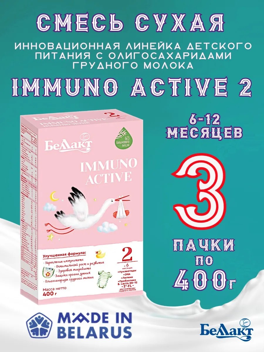 | Package | 3 packages of baby formula of 400 g; Adapted dry milk formula with bifidobacteria "BELLAKT IMMUNO ACTIVE 2" |