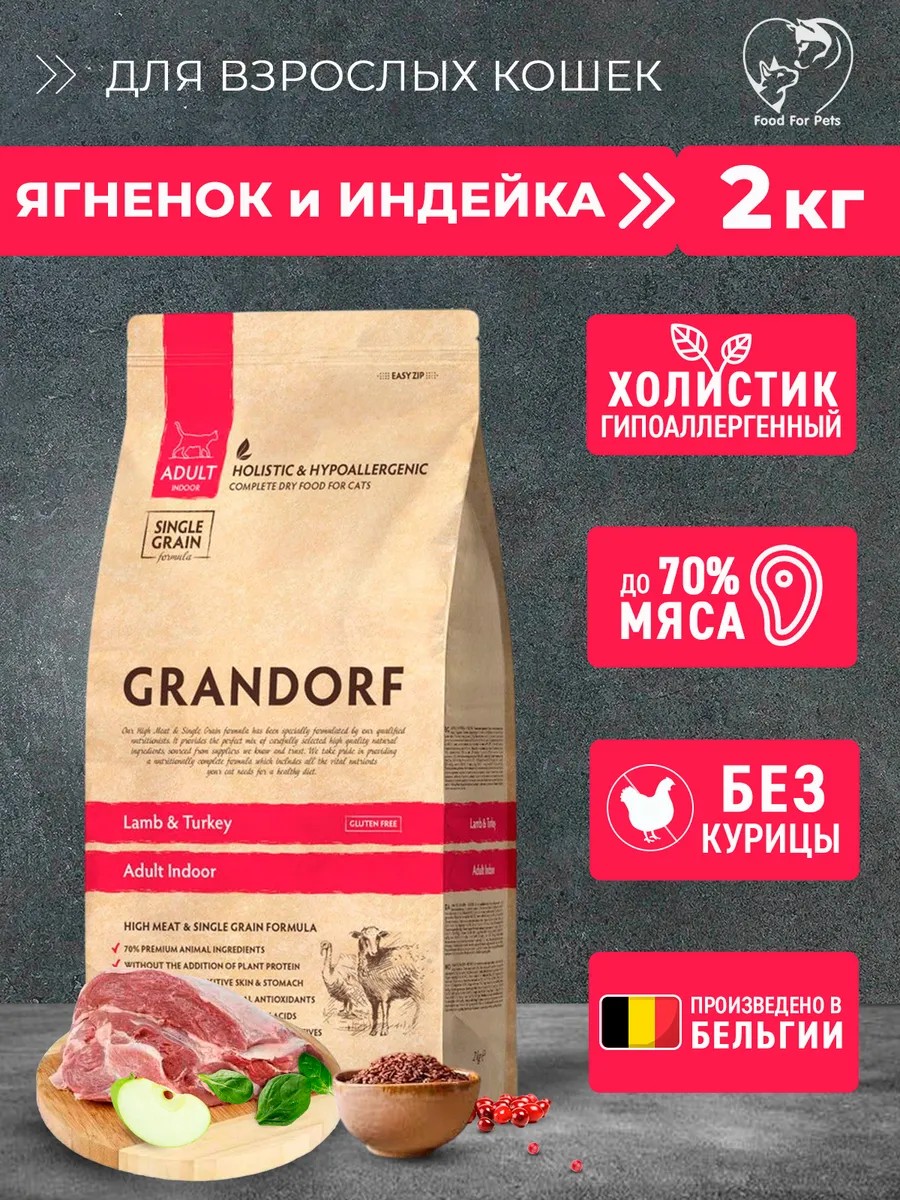 Сухой корм для кошек Грандорф идеален для чувствительного пищеварения или предрасположенностью к аллергиям. Содержит свежее гипоаллергенное мясо ягненка и индейки без костей, что положительно сказывается на общем иммунитете. Благодаря тщательно подобранным ингредиентам, единственному сорту зерновых и отсутствию глютена, обеспечивает отличную усвояемость, высокую пищевую ценность. Способствует здоровью и радости вашего любимца на протяжении многих лет.