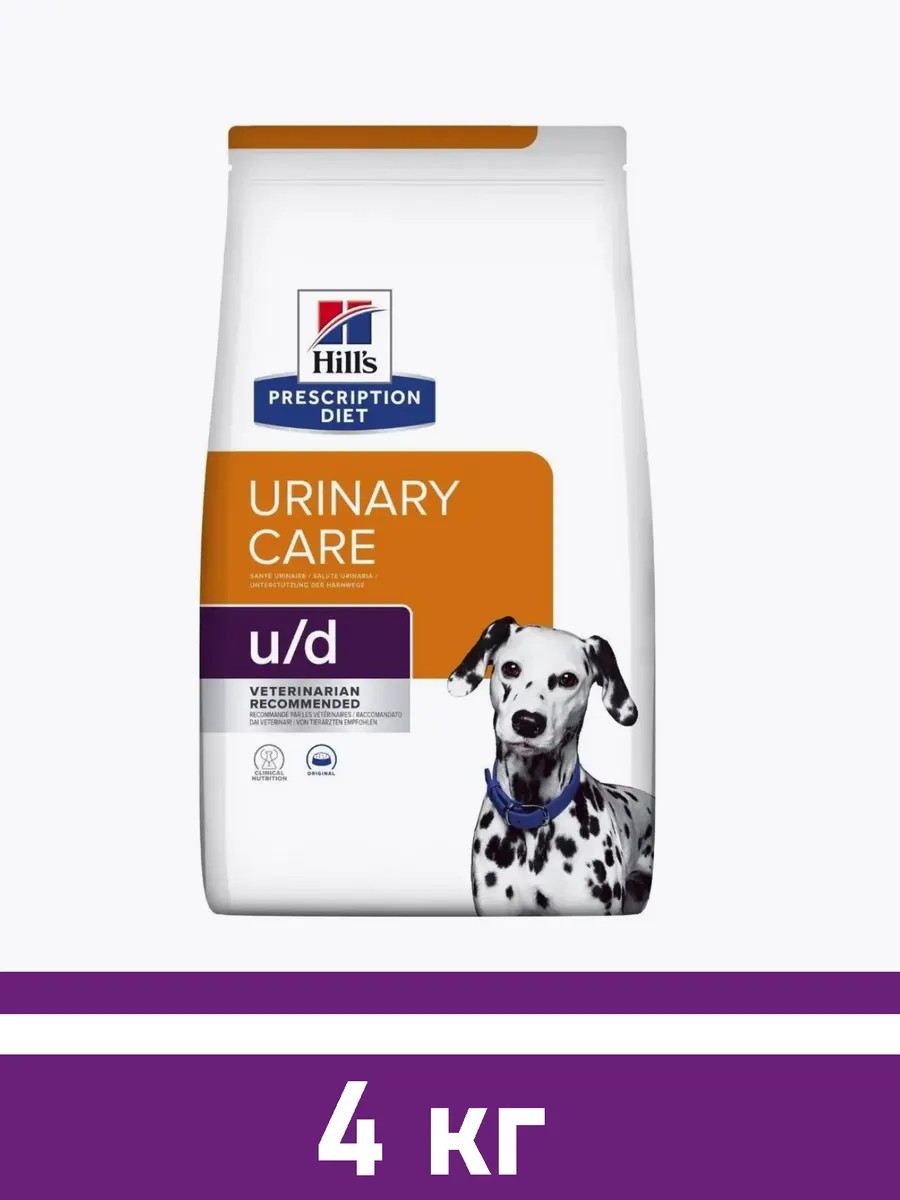 Prescription Diet u/d Dog - диетический корм для собак для уменьшения образования оксалатных, уратных и цистиновых уролитов, сокращения содержания меди в печени и поддержания функции почек при хронической почечной недостаточности.
