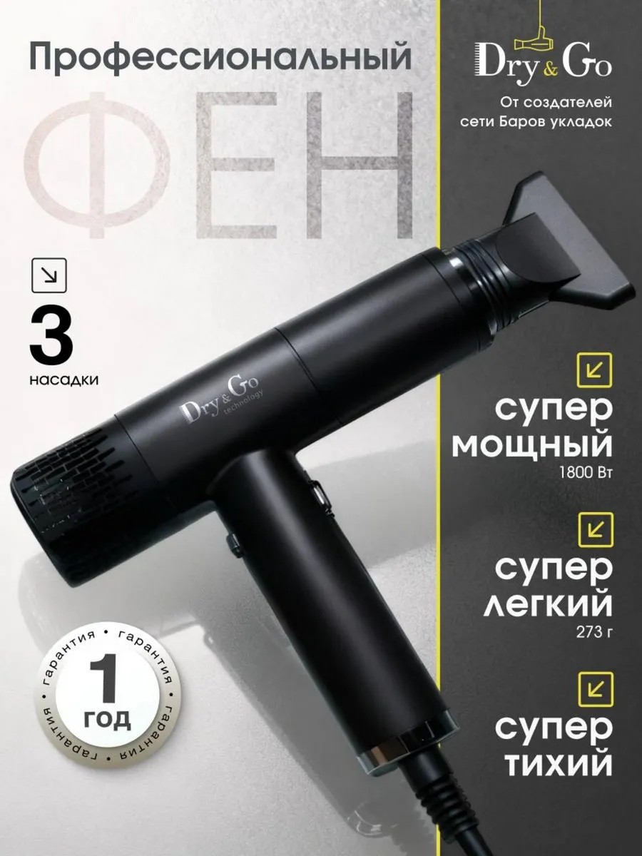 Dry&Go Фен для волос профессиональный мощный с насадками