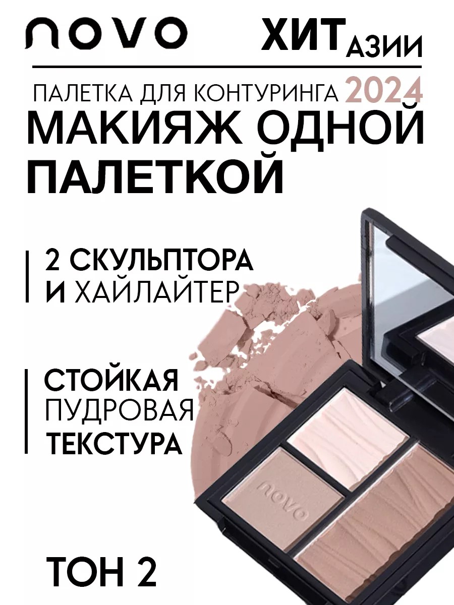 Хотите придать лицу более строгие черты? Палетка для скульптинга Novo Face Sculpting включает два оттенка с матовым финишем и один жемчужный хайлайтер с эффектом мягкого фокуса рассеивает свет. Холодные затемняющие оттенки создают полупрозрачное покрытие с максимально естественным эффектом тени. Всего три оттенка для максимальной выразительности. С помощью контуринга можно визуально удлинить или, наоборот, укоротить нос, сделать лицо более симметричным, выделить скулы, сузить лицо и даже убрать «второй подбородок». Пудровая текстура, легкая и невесомая, придает четкость линий и выразительность чертам одним касание кисти. Сухой контуринг идеально подходит для жирной кожи, так как оказывает матирующий эффект, убирая блеск. Расставьте акценты в макияже и наслаждайтесь собой в течение всего дня.
