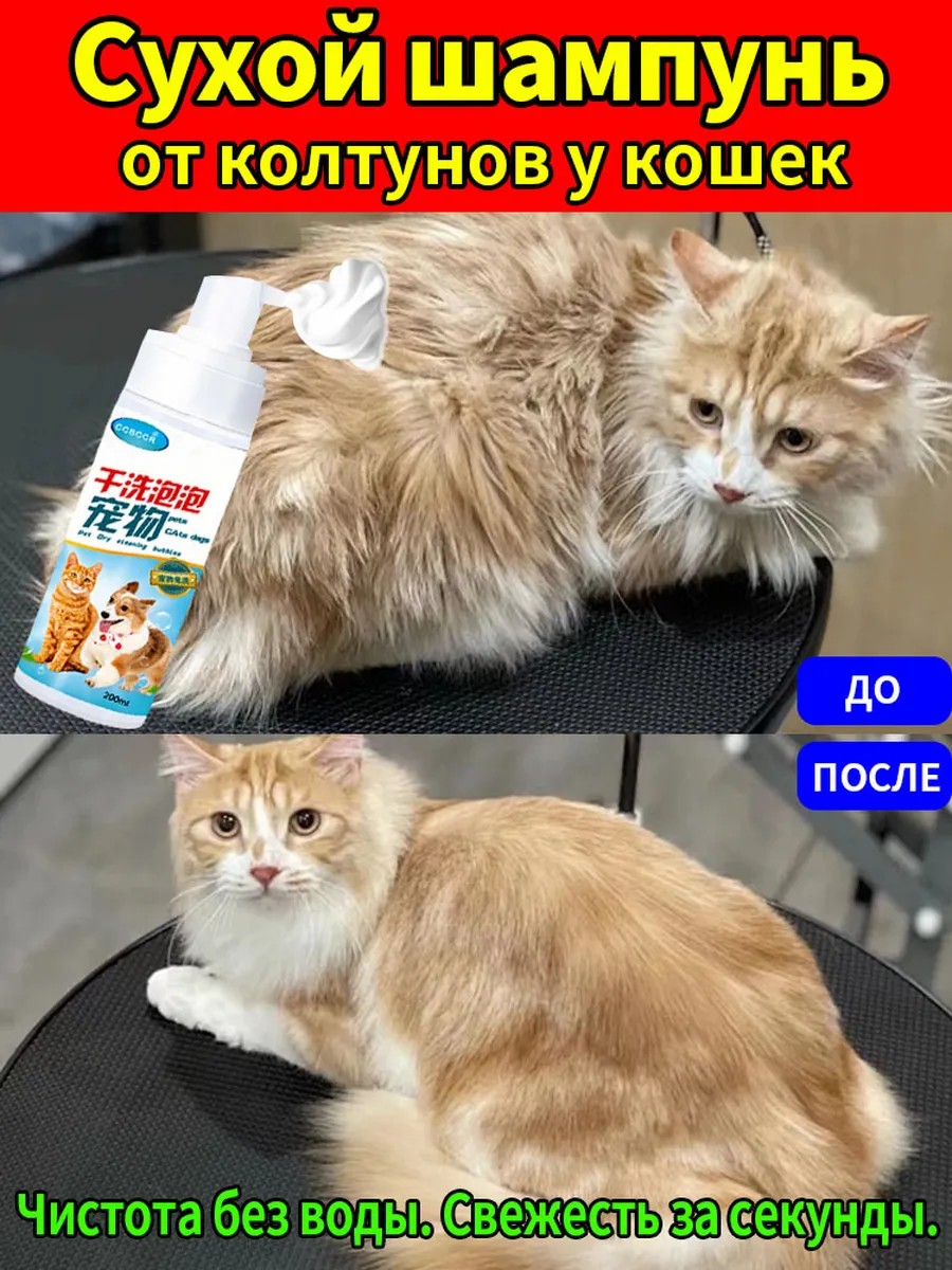 Сухой шампунь для кошек без воды 200 мл