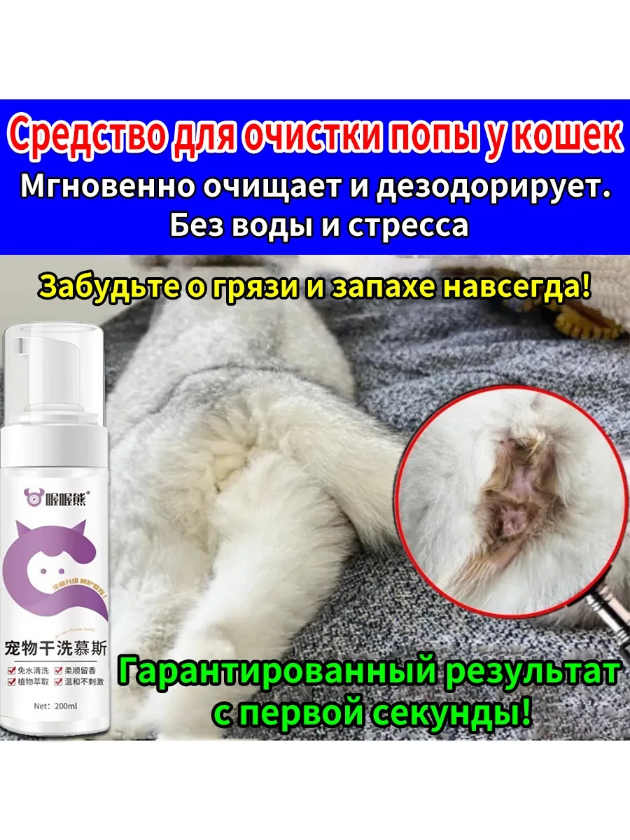Сухой шампунь для гигиены под хвостом у кошек без смывания
