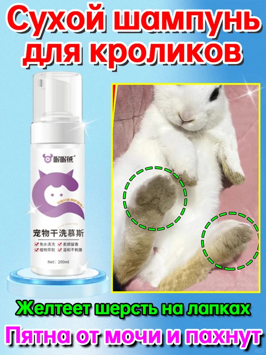 Сухой шампунь-мусс для лапок кроликов, 200 мл