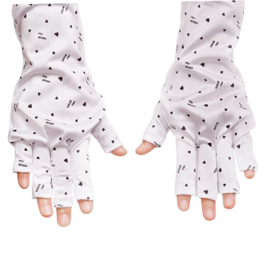 Easy to Wear: Made of soft fabric and high stretch material, UV Shield Gloves are convenient and comfortable to wear and take off. Focused features of reusable, breathable and washable on this nail art glove. Comfortable to Wear: Our UV shield glove is comfortable and breathable which has moisture transfer technology that transports heat and sweat to drier areas-away from skin to exterior of gloves where it can evaporate more efficiently. So that you will not feel sultry during a manicure. Suitable Size for Most: These pinky UV shield gloves are stretchy and elastic, would fit most women and girls. And they are the must have for nail art skin care. UPF 50+ Protection: UPF 50 UV Protection is woven into fabric to protect your hands from harm when doing nail drying, and protect your skin from premature wrinkles, thinning, and or problems caused by UV light lamp or manicure dryer. Treat your hands like a "Second Face". Multiple Purposes: nail art glove is safe and reliable, convenient to carry and a multifunctional UV shield glove can be used for many scenarios, suitable for hiking, traveling, kayaking, biking, driving.